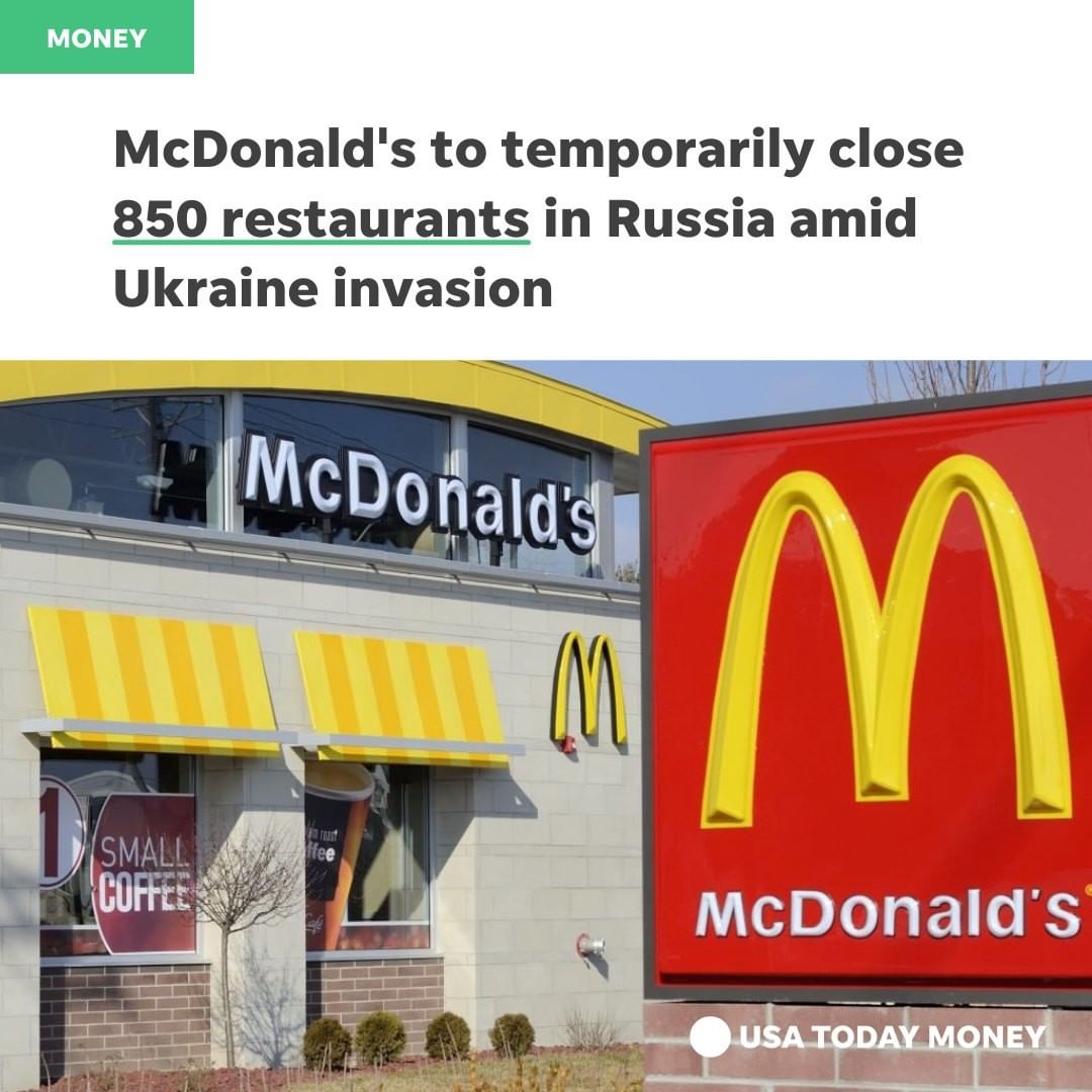 McDonald's says it is temporarily closing 850 restaurants in Russia in response to the Ukraine invasion. Starbucks, which has fairly small business exposure in the region, followed suit and said it was suspending all business in Russia.