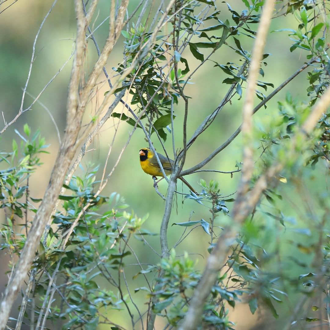 Wildlife watchers have a chance to spot one of the rarest birds along the East Coast in a wooded area at the University of Florida. Experts say Gainesville's newest feathered friend is a one-in-a million picturesque yellow cardinal. While there are an estimated 15 million red cardinals across the eastern U.S., making it one of the most common birds in the wild, there are just 10 to 15 yellow cardinals flying around the region. The newest wildlife attraction has been spotted near campus for several weeks. It has a vibrant yellow body with a black mask around its eyes and beak. The early morning sunlight enhances its brightness against the spring green foliage of the area. Tap our link in bio to read more about where it was spotted! 📷: Brad McClenny, the Gainesville Sun