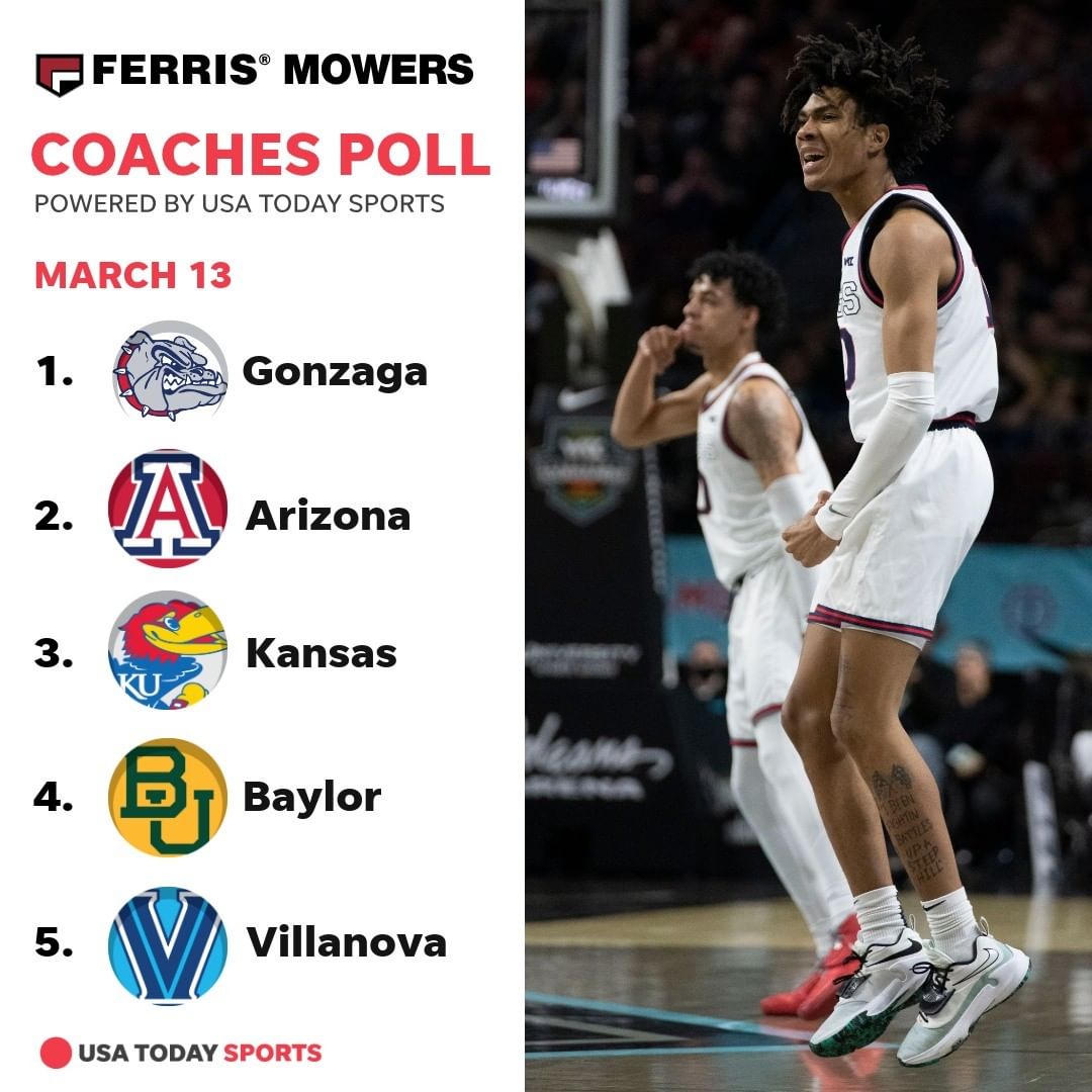In the last Ferris Mowers Coaches Poll before the madness begins, Gonzaga remains No. 1 with Arizona and Kansas rounding out the top three.