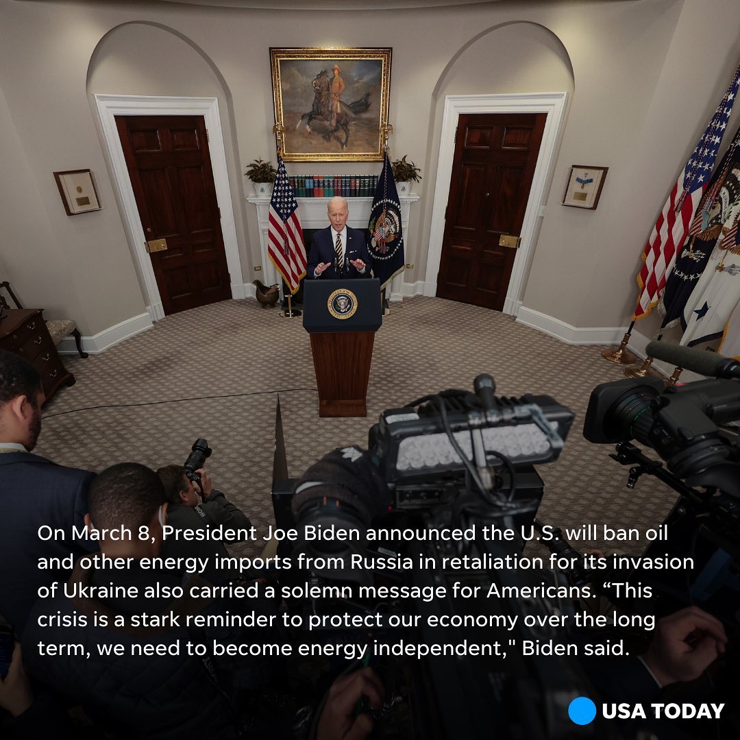 President Joe Biden predicted that banning energy imports from Russia would deal a powerful blow to Russian President Vladimir Putin’s war machine. But he also warned that it would likely drive gas prices even higher in the United States, which he said should motivate the U.S. to accelerate the transition to clean energy.