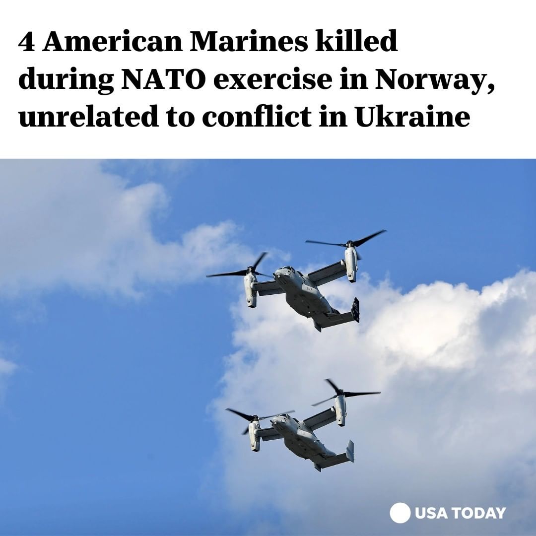 Four U.S. Marines died in a plane crash while participating in a NATO training exercise that is unrelated to the conflict in Ukraine, the Norwegian prime minister said Saturday.