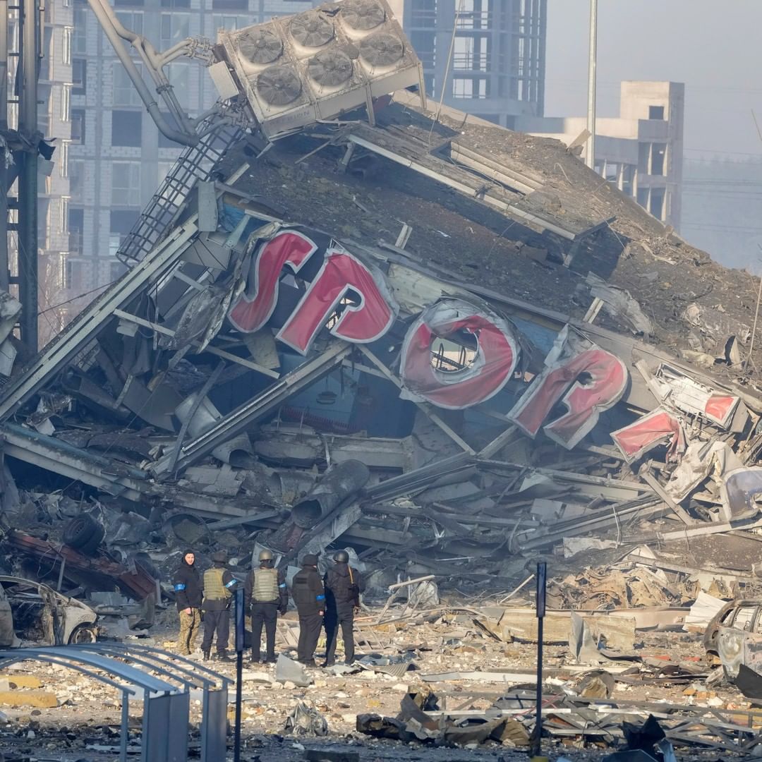 Russian shelling destroyed a shopping center near the city center of Kyiv, killing eight people and injuring at least one, according to emergency officials. The force of the blasts shattered every window in a neighboring high-rise in the densely populated Podil district.