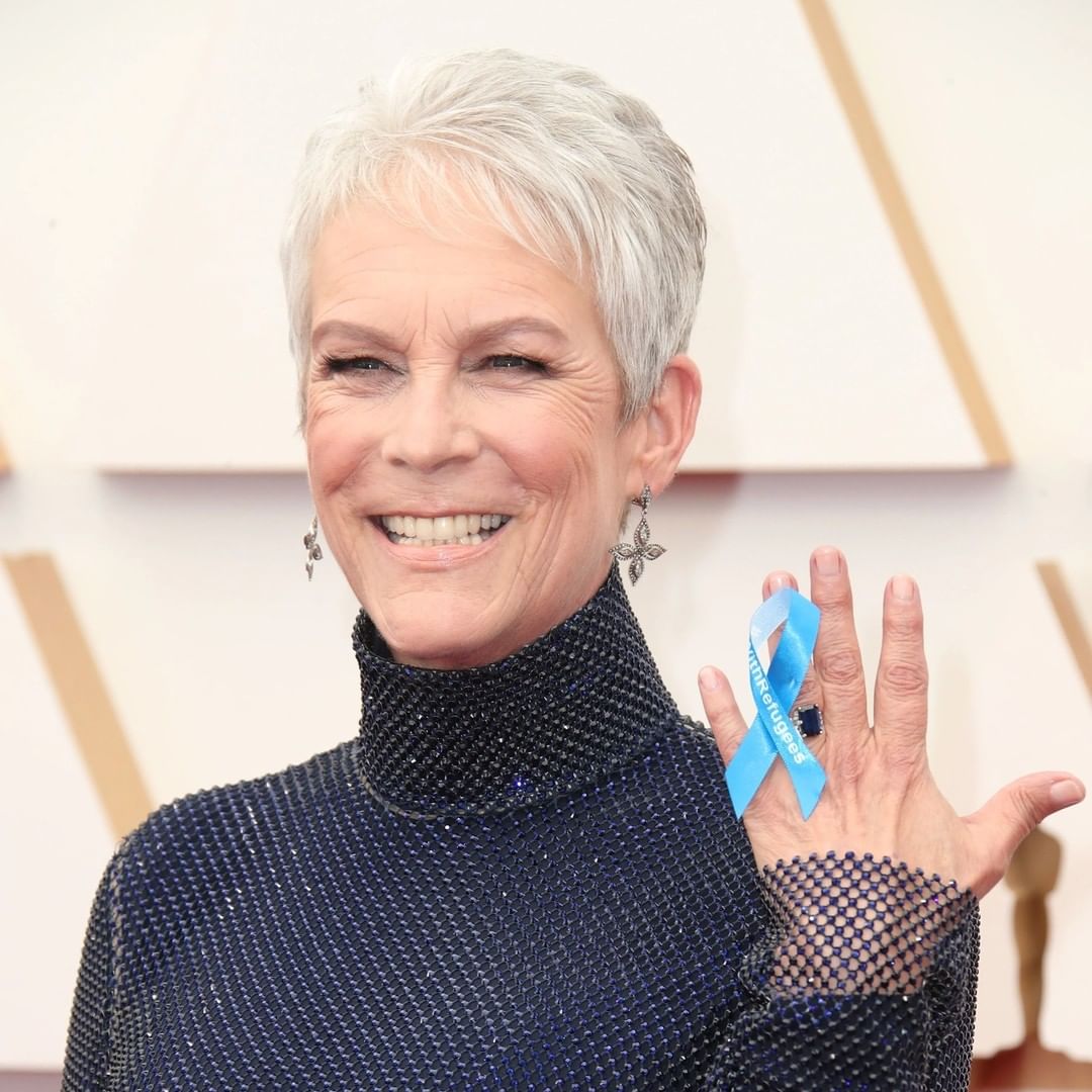 Jamie Lee Curtis wore a ribbon as a tribute to refugees amid Russia's ongoing attack on Ukraine while actors Jason Momoa and Benedict Cumberbatch wore Ukraine's colors, blue and yellow, in a pocket handkerchief and pin, respectively.