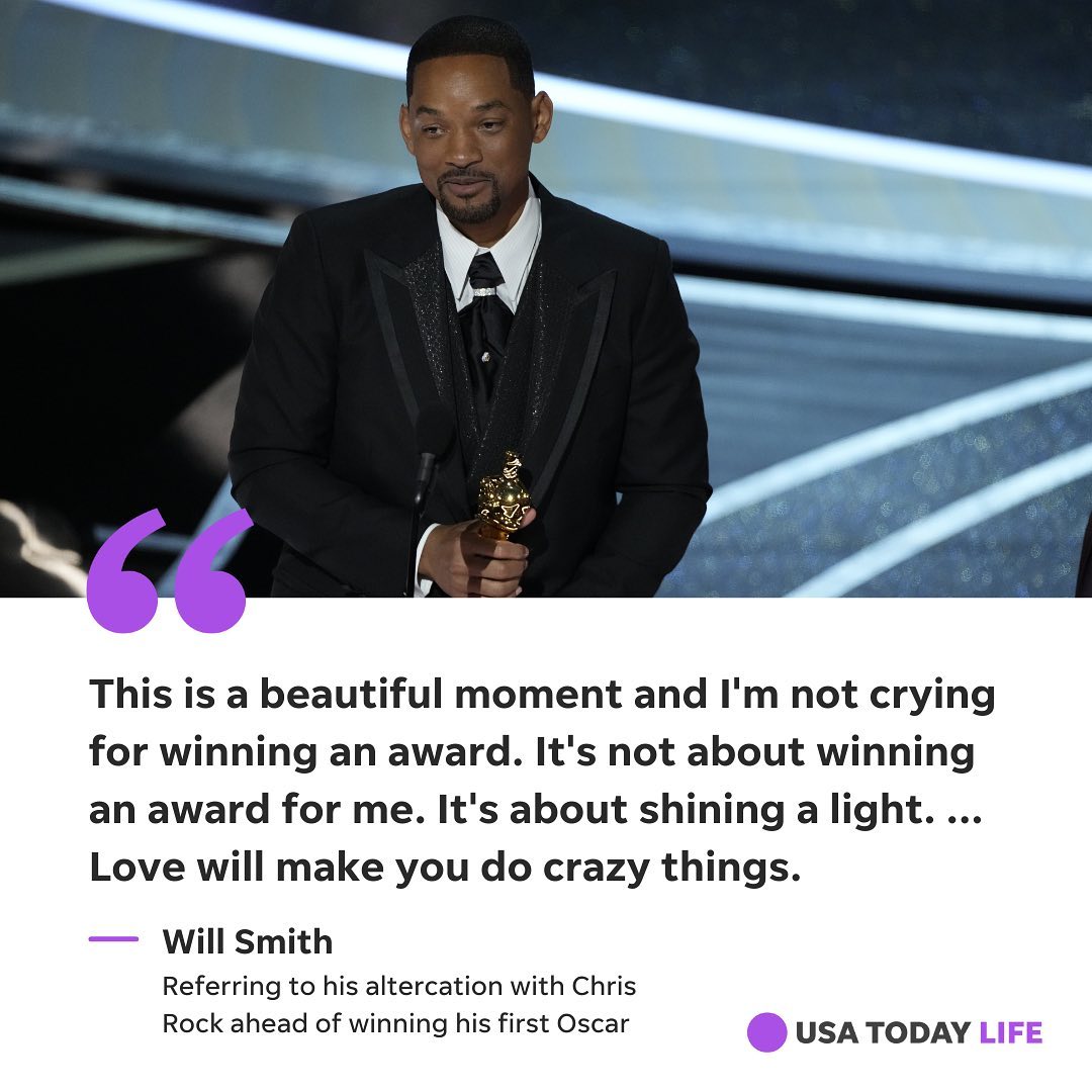 Moments after a heated exchange with Chris Rock, Will Smith accepted the award for best actor for his role as Venus and Serena Williams' father in "King Richard."