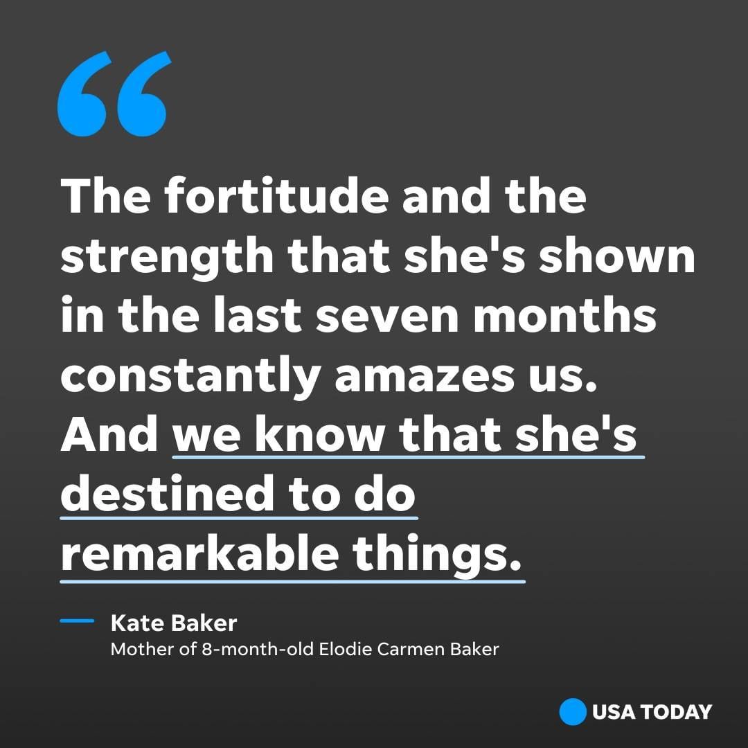 "The fortitude and the strength that she's shown in the last seven months constantly amazes us. And we know that she's destined to do remarkable things," Elodie's mom, Kate Baker, told USA TODAY.