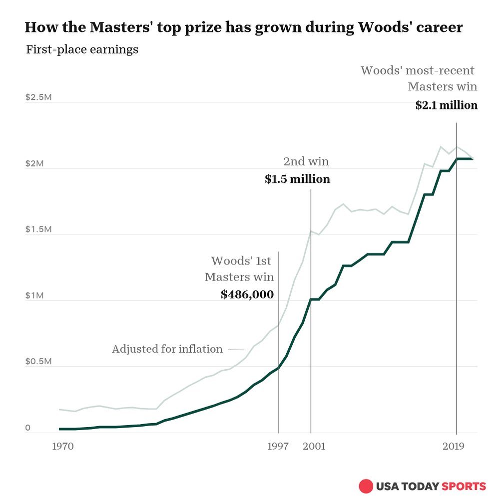 Draw a line at that 1997 victory, and you can see in these charts how the "Tiger Woods effect" has changed the Masters, the PGA Tour and golf.