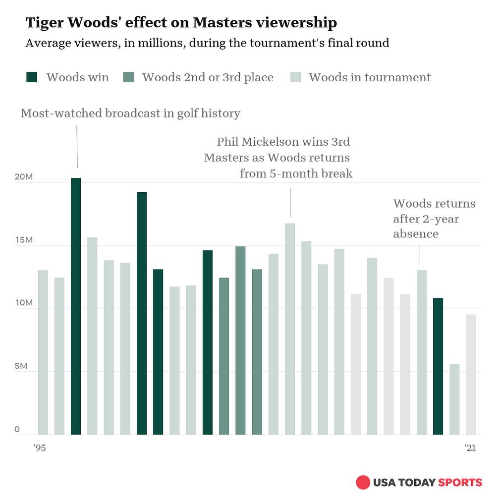 As he prepares to return this year from his February 2021 car crash, the tournament and its TV ratings can likely expect another jolt of interest from golf fans.