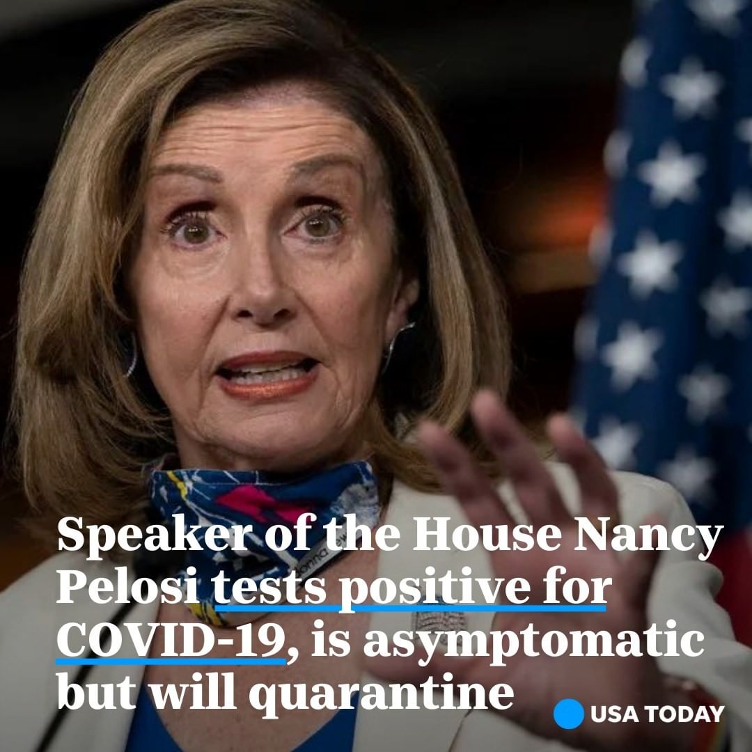Pelosi, who is asymptomatic, tested positive. She will quarantine, her spokesman announced.