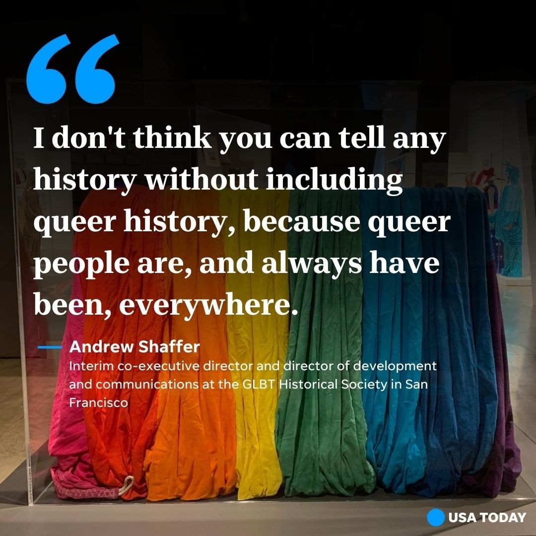 As a record number of Americans identify as LGBTQ, museums focused on queer history and culture play a pivotal role for the LGBTQ community, which has faced historical erasure after decades of marginalization and discrimination that still continue today. It wasn't until the mid-20th century that queer activists stepped up to build their own archives, at first informally, by gathering artifacts like journals, meeting notes and protest banners, and then in more formal collections like the GLBT Historical Society, founded in 2011. The GLBT Historical Society is the only stand-alone museum in the country dedicated solely to LGBTQ history and culture. In the first photo, the segment of one of the original rainbow flags created for San Francisco Gay Freedom Day 1978 rests in its case at the GLBT Historical Society Museum. In 2024, the American LGBTQ+ Museum is set to open in New York City in 2024. Amari McGee, an activist and consultant, has an ambitious goal for 2022: visiting every LGBTQ museum or relevant exhibit in the United States. He's hoping to educate himself on the history and culture of a community he's a part of as a transgender man, and intends to use the knowledge he gains to improve the services he can provide to others. Click our link in bio to read more about the ways archives and exhibits are being curated to showcase more LGBTQ history and how “decades of work and activism and archiving practice by queer people” are now coming to fruition.