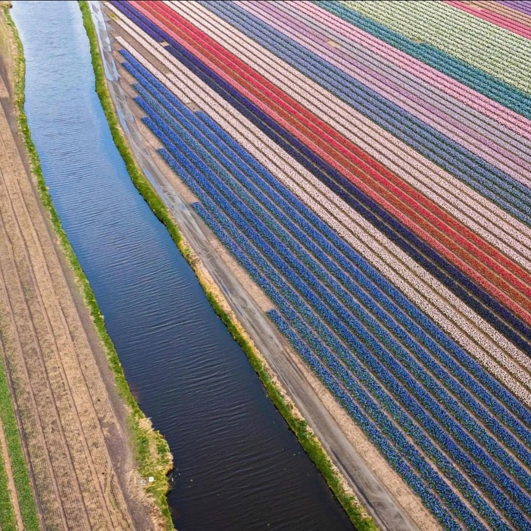 Spring has sprung. 🌷 This burst of color was spotted from the sky in the Netherlands. Wouldn't you like to run through those rows of tulips and hyacinths? 📸 Jeffrey Groeneweg, AFP via Getty Images