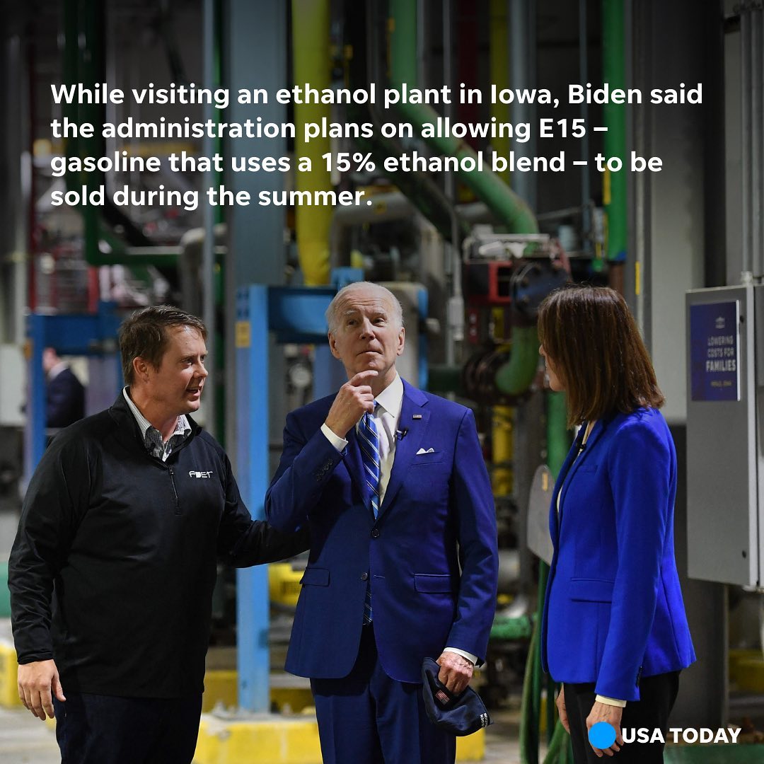 A potential fix for high gas prices?   President Joe Biden announced Tuesday another step to try to reduce prices for drivers who have been paying more to fill up their tanks: expanding the availability of biofuels.   While visiting an ethanol plant in Iowa, Biden  said the administration plans on allowing E15 –  gasoline that uses a 15% ethanol blend – to be sold during the summer.   Regular gas is averaging around $4.11 a gallon compared with $2.86 a year ago, according to AAA, and Biden is under political pressure to show he is doing what he can to ease the price pain at the pump.   Overall, however, E15 is just a “bit player” in the fuel distribution system, Kloza said. The blend hasn’t caught on with the public, because drivers are often confused about whether E15 is a good choice for their car.   To read more, tap the link in our bio.