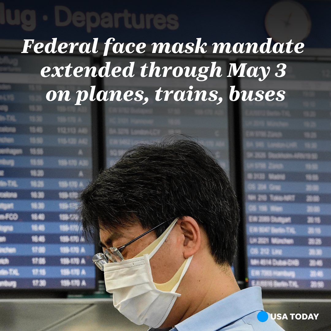 The federal transportation mask mandate, announced in January 2021 and due to expire April 18, will be extended through May 3.