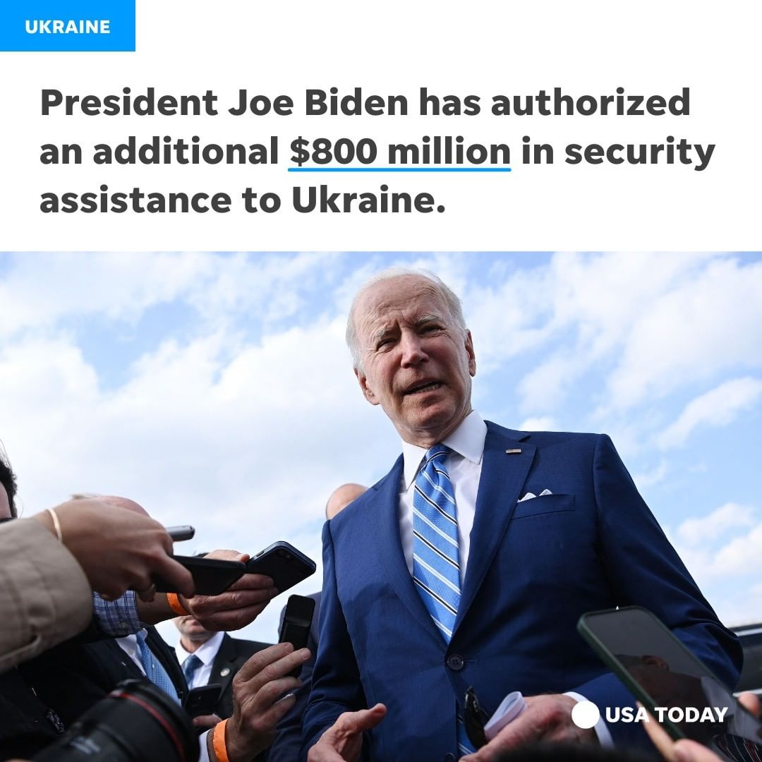 Biden said in a statement that he has authorized an additional $800 million in security assistance to Ukraine, including weapons and ammunition.