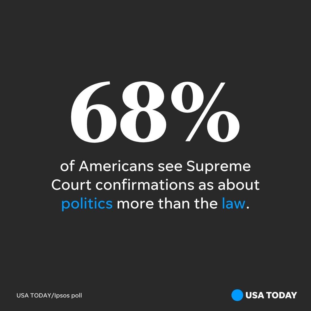 But, nearly seven in 10 Americans see the constitutionally mandated task of confirming a Supreme Court nominee as more about politics than substance. Only about 36% of people say the marathon of hearings leads to better justices on the high court.