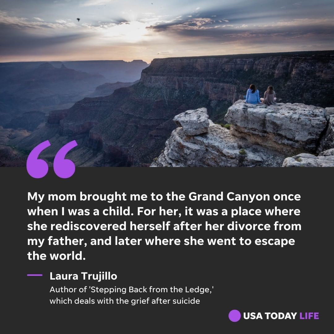 This story contains discussion of suicide. If you or someone you know may be struggling with suicidal thoughts, call the National Suicide Prevention Lifeline at 1-800-273-8255. Finding hope again. Nearly a decade after her mother died by suicide, Laura Trujillo discusses her journey with grief in her new book, “Stepping Back From the Ledge.” Trujillo confronts her family’s secrets in the aftermath of her mother’s suicide, asking a seemingly impossible question: How do you mourn a loved one as you repair the injuries they inflicted? She takes readers back to 2016 when she spent time at the Grand Canyon, a place her mother loved and the place where she died, to find forgiveness and understanding. “Now, I didn’t just want to know everything. I needed to know it,” Trujillo, USA TODAY managing editor for Life and Entertainment, wrote. Tap the link in bio to read an excerpt, and for info on how to join Trujillo for a reading of “Stepping Back From the Ledge,” a Q&A and a chance to share some of your own story. 📸: Kelley Benham French