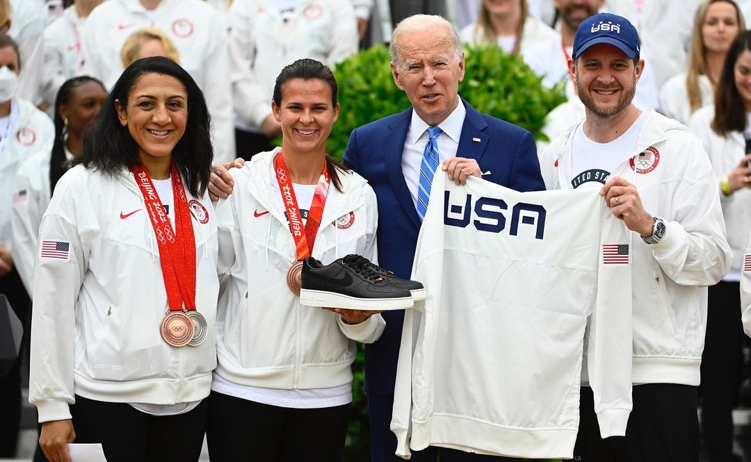 The U.S. Olympic and Paralympic teams from both the Summer and Winter Games were honored by President Joe Biden and Vice President Kamala Harris at the White House on Wednesday. The gathering included nearly 600 athletes and took place on the South Lawn. First lady Jill Biden and second gentlemen Doug Emhoff were also present during the event, at which Winter Olympic stars Elana Meyers Taylor, Brittany Bowe, John Shuster and wheelchair basketball player Matt Scott took to the podium and presented shirts and sneakers to the president, vice president, first lady and second gentleman. “It’s been a very divided nation … but you brought us together. No matter the divisions, when we see you compete, we feel a common pride in those letters: USA,” Biden said.