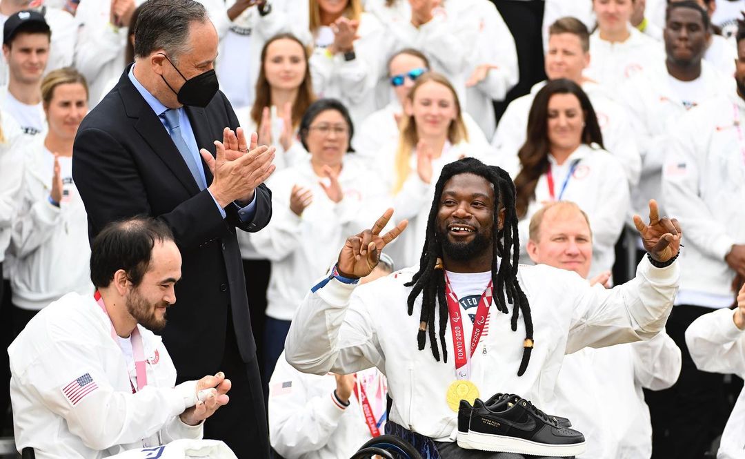 The U.S. Olympic and Paralympic teams from both the Summer and Winter Games were honored by President Joe Biden and Vice President Kamala Harris at the White House on Wednesday. The gathering included nearly 600 athletes and took place on the South Lawn. First lady Jill Biden and second gentlemen Doug Emhoff were also present during the event, at which Winter Olympic stars Elana Meyers Taylor, Brittany Bowe, John Shuster and wheelchair basketball player Matt Scott took to the podium and presented shirts and sneakers to the president, vice president, first lady and second gentleman. “It’s been a very divided nation … but you brought us together. No matter the divisions, when we see you compete, we feel a common pride in those letters: USA,” Biden said.