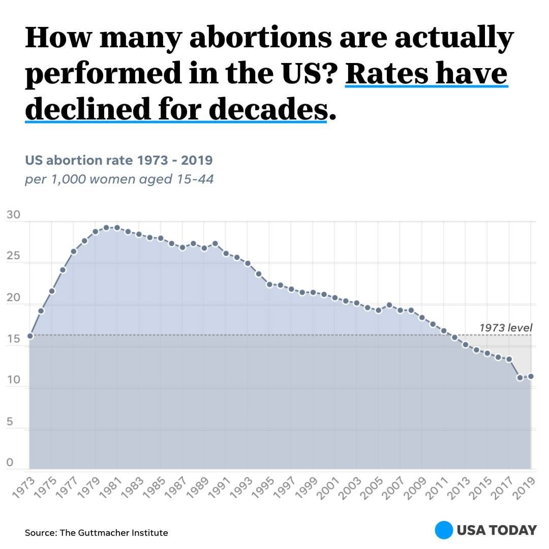 How many abortions are actually performed in the US? Abortions in the U.S. peaked in 1981, at a rate of 29.3 per 1,000 women between the ages of 15 and 44, according to the Centers for Disease Control and Prevention. Since then, the number has fallen by three-fifths. In 2019, the last year for which numbers are available, the rate was 11.4. Research has shown that increases in distance to clinics are associated with lower abortion rates, especially for women with limited resources and difficult personal circumstances. Professor of economics at Middlebury College Caitlin Knowles Myers and her team calculated "the vast majority" of women in states where abortion likely would be banned or strictly limited would have to travel 200 miles or more to reach a provider. They estimated about two-thirds of women in those states would find a way to reach an open facility but one-third would not, resulting in 75,000 fewer abortions per year. In 2019 at least 629,898 abortions were reported in the United States, according to the CDC. Click the link in our bio for more data and information on abortion rates in the U.S.