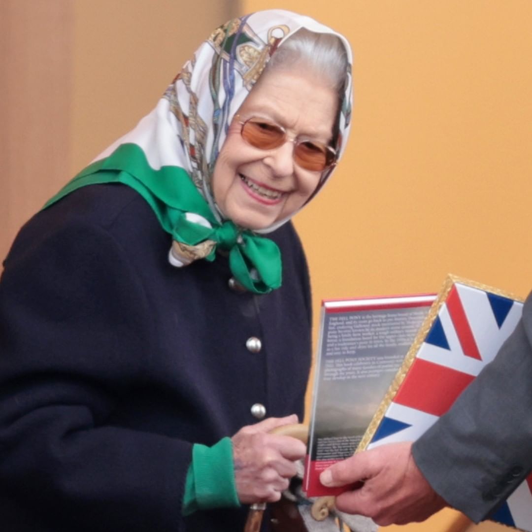Queen Elizabeth II has that Friday feeling, sporting a grin and sunglasses while doing her favorite thing — spending time with horses. 🐴