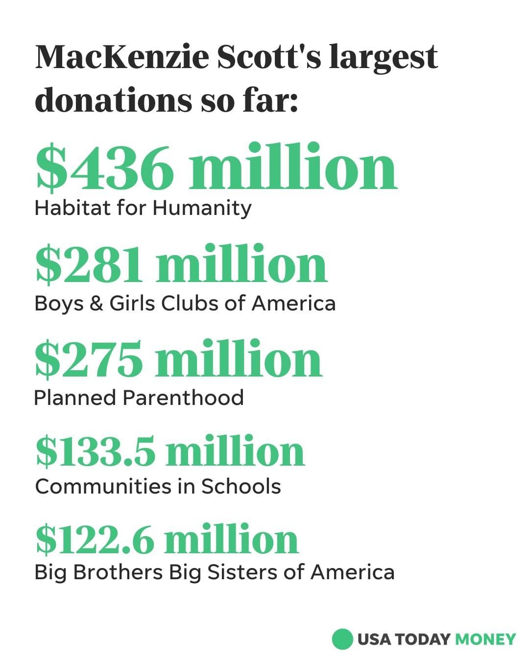 Though Scott's bigger donations receive the most attention, smaller groups consider the amounts they have received from her large by their standard. In some cases, Scott's donations exceed annual budgets.