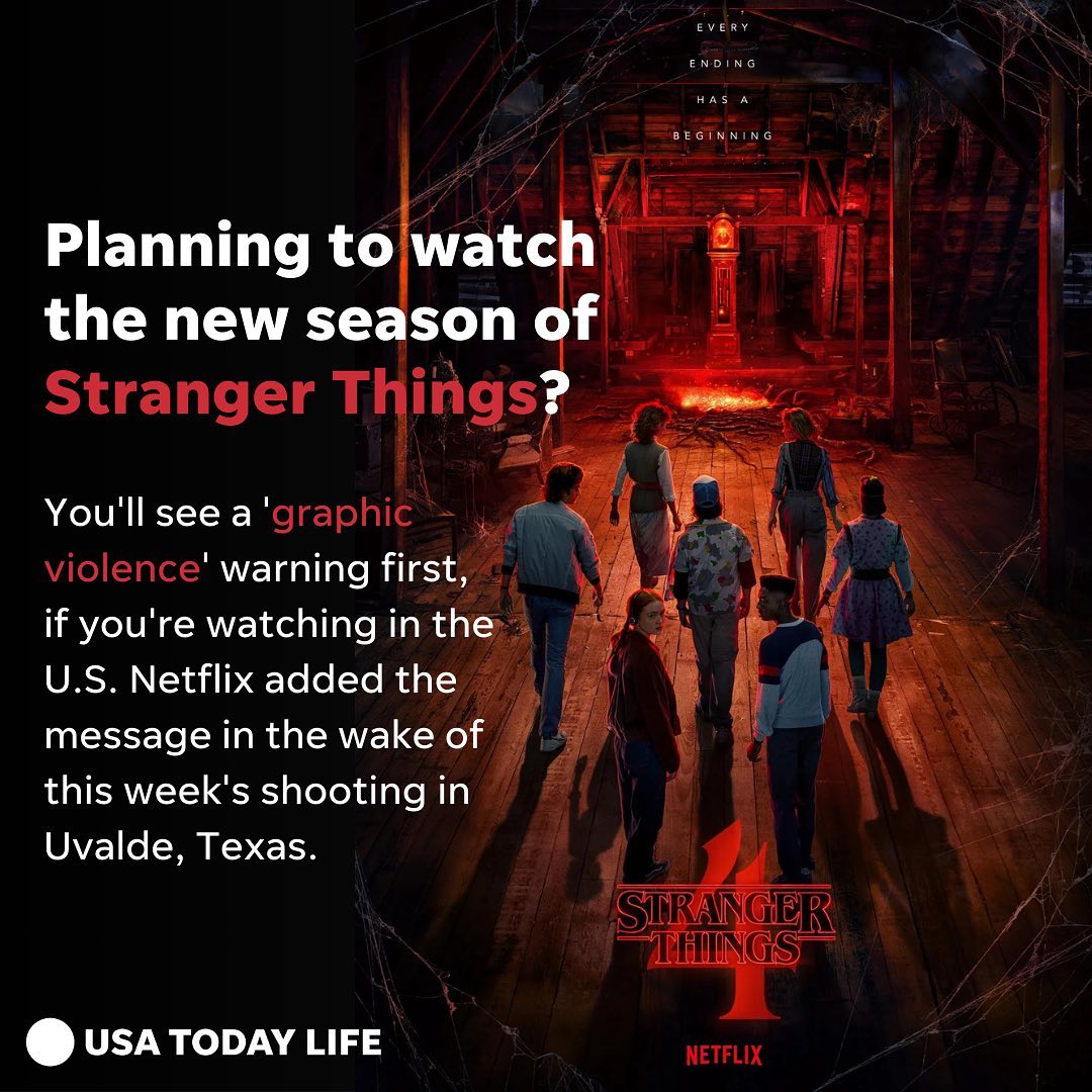 Netflix added a warning label to the Season 4 premiere of “Stranger Things” after the deadly school shooting in Uvalde, Texas.
