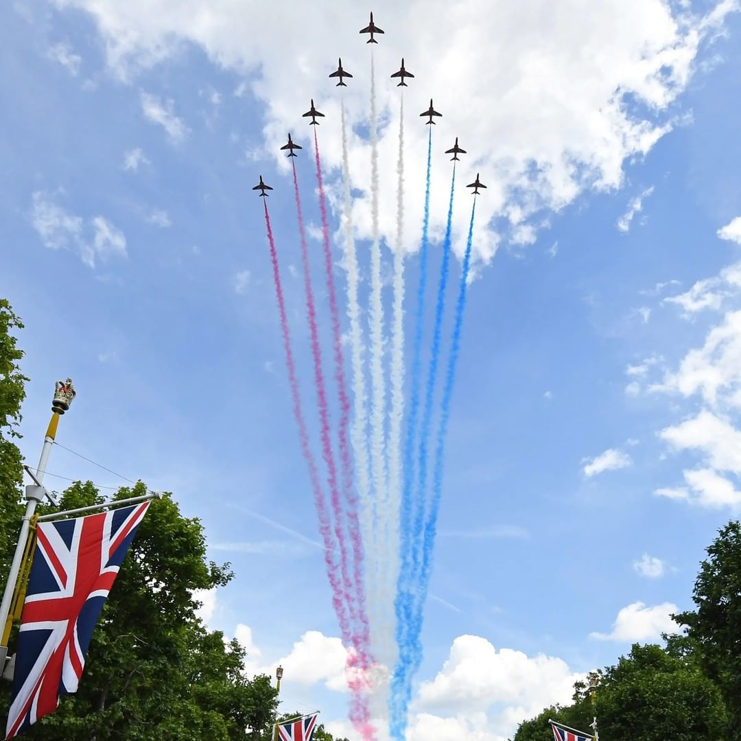 🇬🇧 The royal party has begun! With a familiar swirl of military color and precision, Britain kicked off Queen Elizabeth II's Platinum Jubilee celebrations with the Trooping the Colour parade that saw the 96-year-old monarch appear – twice – for the first time in years on the balcony of Buckingham Palace. Dressed in a pale blue coat dress and hat, holding a cane and wearing shaded glasses, the queen looked happy and well, and even talked to one of her great-grandchildren as she stood on the balcony. She appeared first with one of her royal cousins, the Duke of Kent, 86, to take the salute of her troops, and then with her extended family of "working royals" as RAF jets roared overhead in the traditional end of the Trooping parade. Fighter jets flew in formation to create the number '70' in the sky over the palace, acknowledging the queen's unprecedented 70 years on her throne. Also for the first time, the queen "took the salute" as ranks of scarlet-clad mounted and marching British soldiers passed below and huge crowds of people on The Mall shouted and cheered their affection for their long-serving "Platinum Queen." Even more #platinumjubilee events are ahead, check out the link in our bio to see what else is planned for the four-day celebration. 📸: @gettyimages