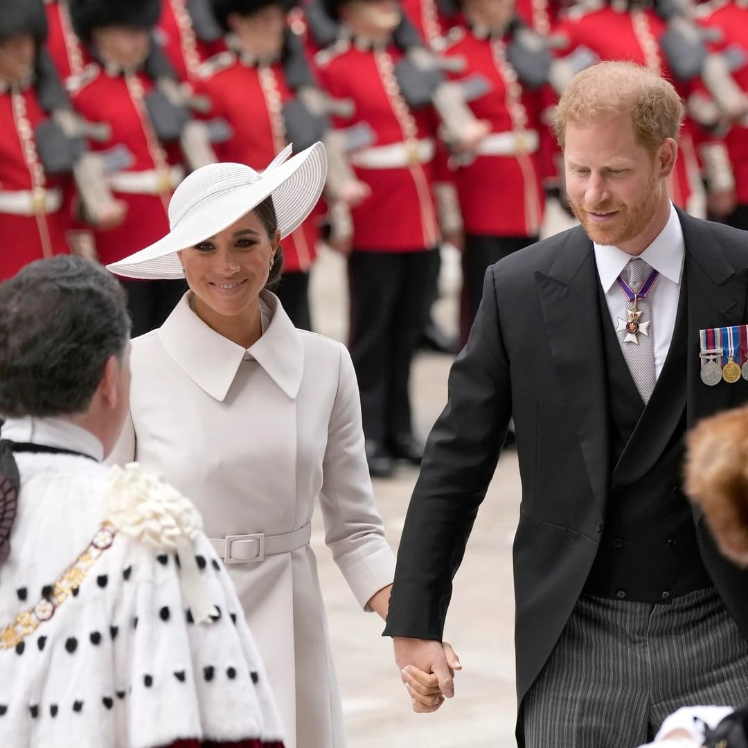 Prince Harry and Duchess Meghan are back in the U.K. lens after attending Friday's service of thanksgiving for Queen Elizabeth II's Platinum Jubilee.