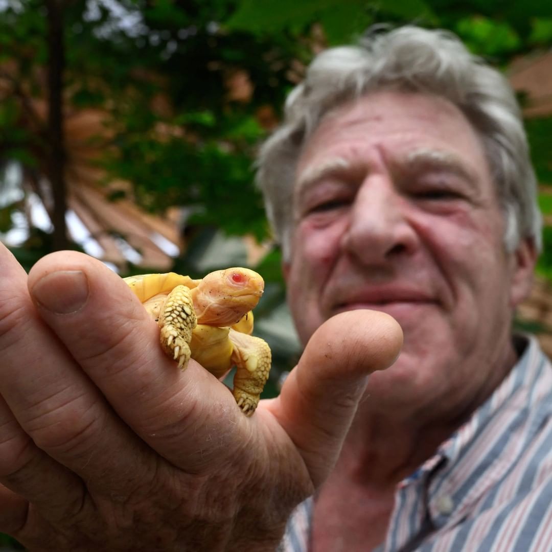 A "never before been observed" albino Galapagos giant tortoise made its first public debut at a Swiss zoo on Friday. Two tortoises, one black and the other albino, were born in early May at the Tropiquarium zoo in Servion, Switzerland. "With his red eyes and white shell, he's the new Swiss mascot," a post on the zoo's social media said. The Galapagos giant tortoise is an endangered species, with fewer than 15,000 alive today, according to Tropiquarium. The tortoises were bred through a species conservation program, which considers any tortoise birth to be exceptional. But an albino baby tortoise is unheard of. The albino baby hatched on May 1, two-and-a-half months after the mother laid five eggs on Feb. 11, Reuters reported. "This is the first time in the world that an albino Galapagos tortoise has been born and kept in captivity. No albino individuals have ever been observed in the wild," the zoo said in a statement. Click the link in our bio to learn more about the albino Galapagos tortoise. 📷: @gettyimages