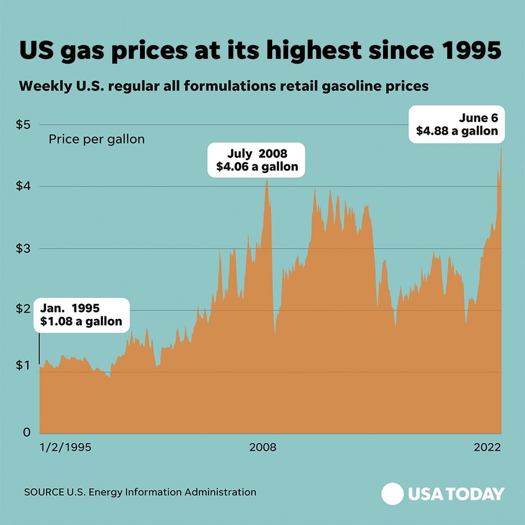 Prices for a gallon of gas is now at its highest since 1995, back when it was only $1.08. Current gas prices have also surpassed the previous high of $4.06 a gallon in 2008.