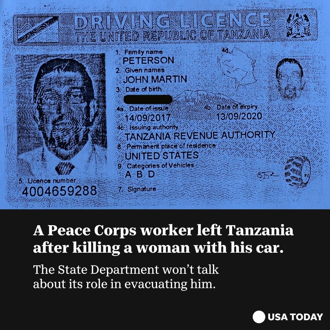 An American Peace Corps employee in Tanzania in 2019 killed a mother of three and injured two others in a series of crashes after a night of drinking.