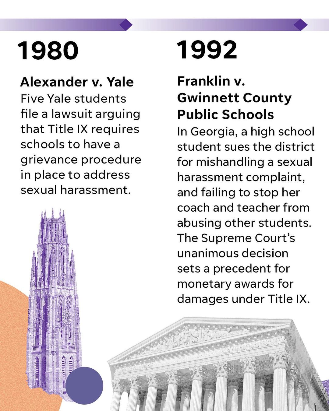 Title IX, the landmark law that banned sex-based discrimination in schools, passed 50 years ago. Initially introduced in hopes of getting more women into graduate schools, Title IX is most commonly associated with athletics because of its seismic impact on women's sports. But did you know Title IX offers a host of other protections, too? Check out more Title IX history from @usatoday and @19thnews at the links in our bios. And join The 19th for their #19thRepresents Summit, three days of discussions and performances focused on Title IX's impact over the past five decades #titleix #the19th #womenssports
