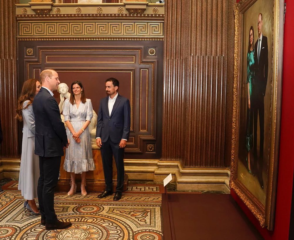 Voilà! Prince William and Duchess Kate are now immortalized with a brush and a canvas. 🎨🖌 The @dukeandduchessofcambridge unveiled their first official portrait together Thursday, sharing photos of a framed painting of the two standing side by side with knowing smirks. British artist Jamie Coreth painted the Duke of Cambridge wearing a black suit with a teal tie and the duchess wearing an emerald green silk gown from The Vampire's Wife, detailing the texture and pattern with each stroke. Head to the LINK IN BIO to read more about the new art! 📸: AP