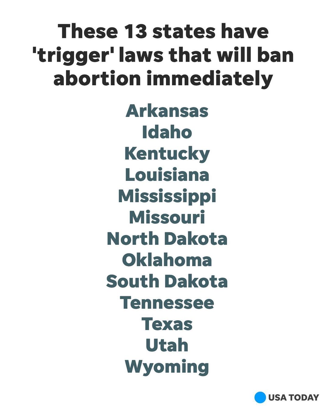 Of these 22 states, 13 have laws designed to be “triggered,” taking effect automatically or by quick state action, since Roe no longer applies. Nine states have an abortion ban on the books from before Roe v. Wade.