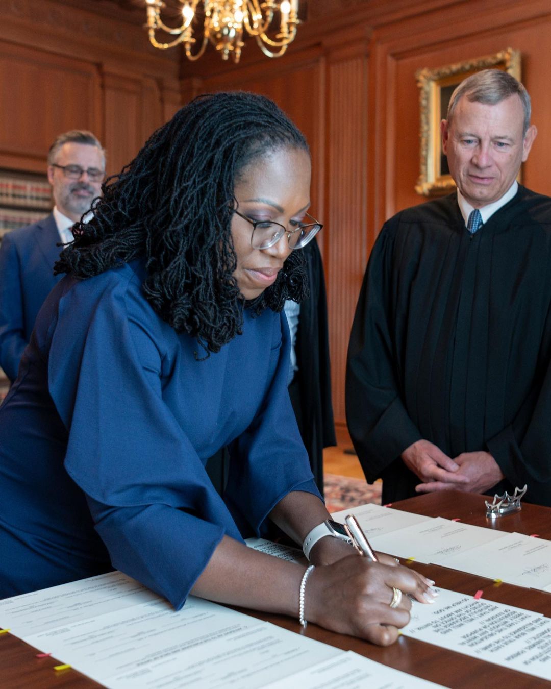 Ketanji Brown Jackson made history Thursday as the first Black woman to sit on the Supreme Court. Jackson is a former public defender who rose to become a judge on a powerful federal appeals court. She will take the seat occupied by Associate Justice Stephen Breyer for 28 years. Breyer announced his retirement in January, clearing the way for President Joe Biden to name Jackson as his first pick for the nation's highest court. Previously a judge on the powerful U.S. Court of Appeals for the D.C. Circuit, Jackson took the oath of office at a fraught moment for the high court, as its decisions to overturn Roe v. Wade and expand access to handguns have exacerbated tensions among the justices and underscored divisions among Americans over culture war issues. For more news on the Supreme Court, click the link in our bio. 📸 Fred Schilling