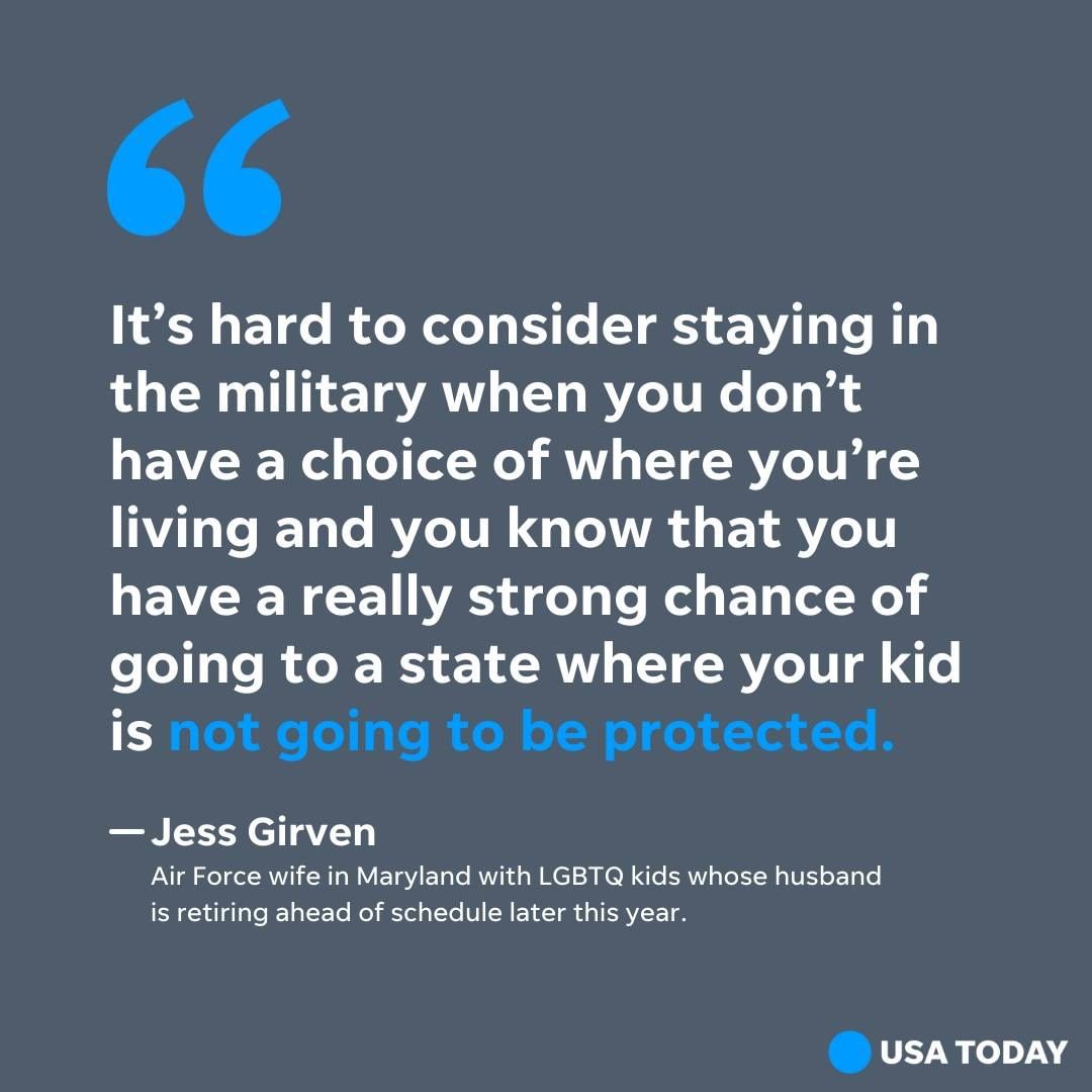With so many different anti-LGBTQ laws to worry about, some military families have decided to leave the armed services altogether to move to a state with LGBTQ protections.