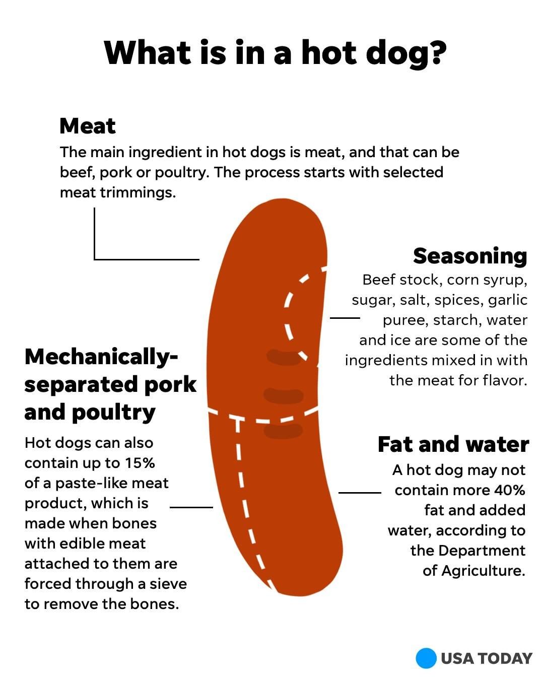 What is actually in a hot dog? There can be beef, pork, chicken and ... other stuff.