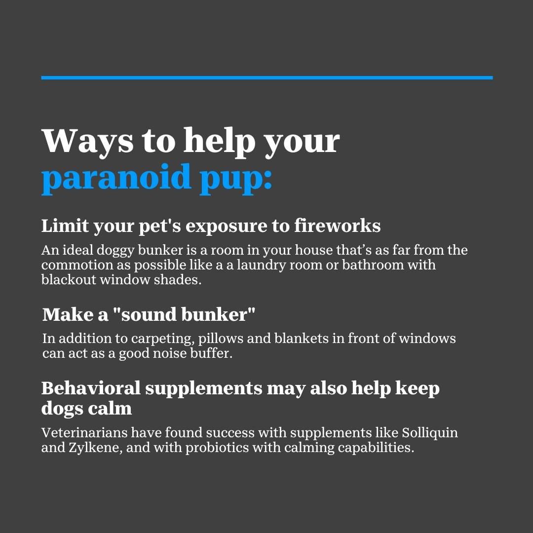 One method is fairly simple: Don’t expose your pet to fireworks—and the crowds, noise and smells that go along with them—in the first place.