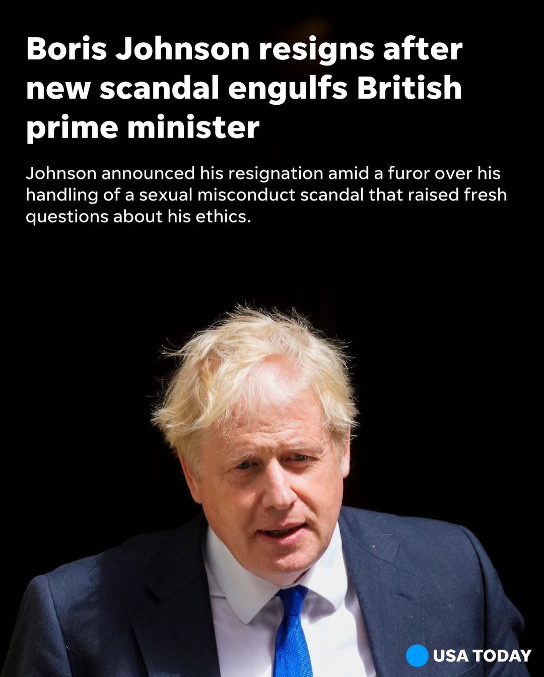 Johnson’s departure will end his three-year turn as the British leader. It comes after days of turmoil triggered by his evolving explanations of what he knew about a sexual misconduct scandal involving one of his allies.