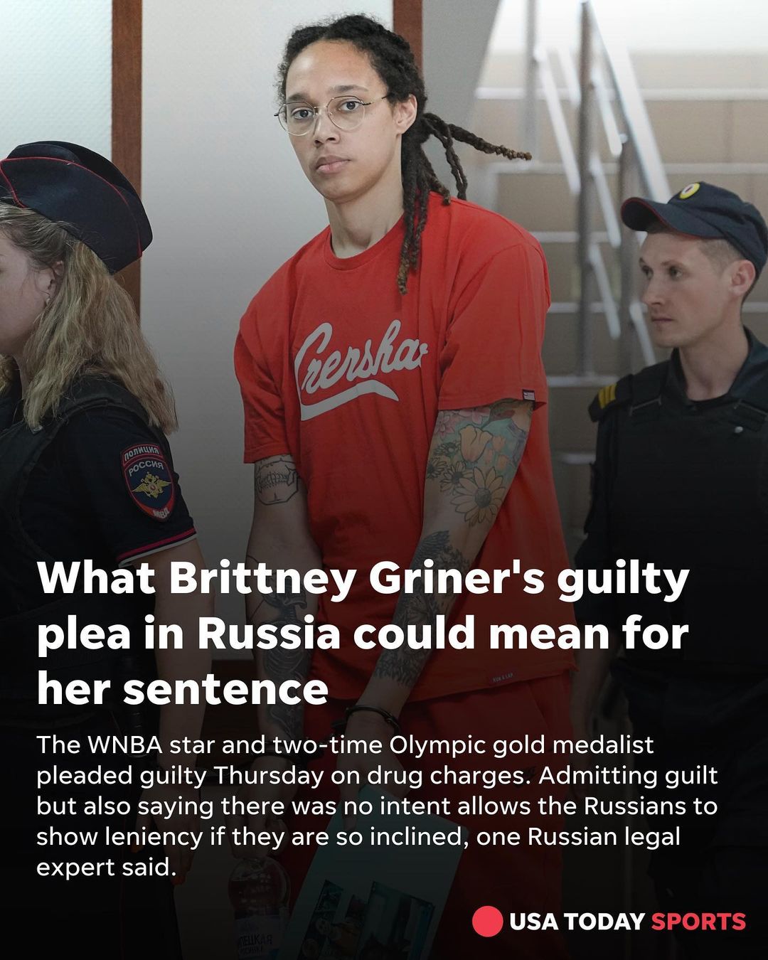 Reuters reported from the courtroom Thursday that Griner entered a guilty plea and could face up to 10 years in prison. The Russians have accused Griner of large-scale drug transportation. Griner been in Russian custody since Feb. 17. She spoke to the court during her plea.