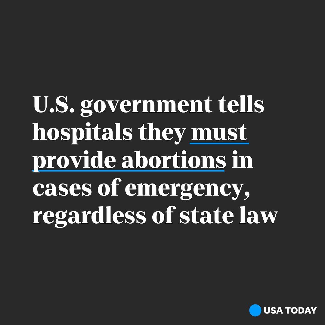 The Biden administration advised health care providers Monday that they must provide abortions to stabilize women in emergency situations regardless of laws in the states where they practice. The advisory comes just two weeks after a Supreme Court decision overturning Roe v. Wade. Click the link in our bio for more information.