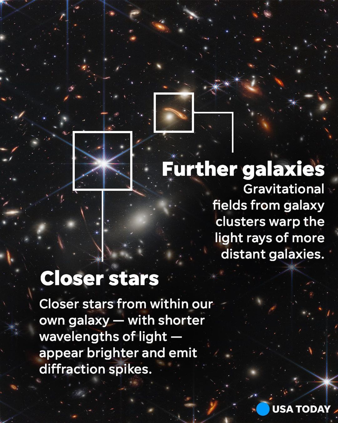 What do the first images from the James Webb Space Telescope tell us? The $10 billion observatory was designed to perceive light from the infrared spectrum. Photos from the telescope can provide clues about how the first stars formed and how chemical signatures from exoplanets could point to the building blocks of life. These are just some of the details we can tell from the images released by NASA, ESA, CSA, and STScI. Click the link in our bio for more on what we can learn from space.