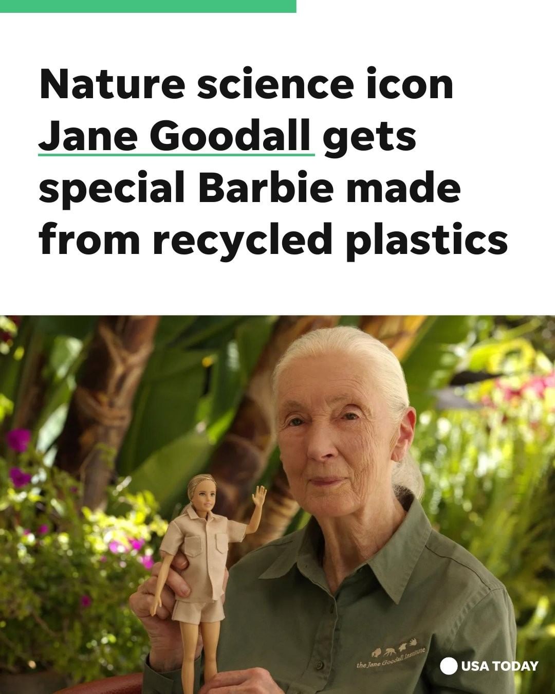 In partnership with the Jane Goodall Institute, Goodall's Barbie was introduced alongside Barbie's "2022 Barbie Career of The Year Eco-Leadership Team" – a doll set that includes a conservation scientist, a renewable energy engineer, a chief sustainability officer and an environmental advocate.