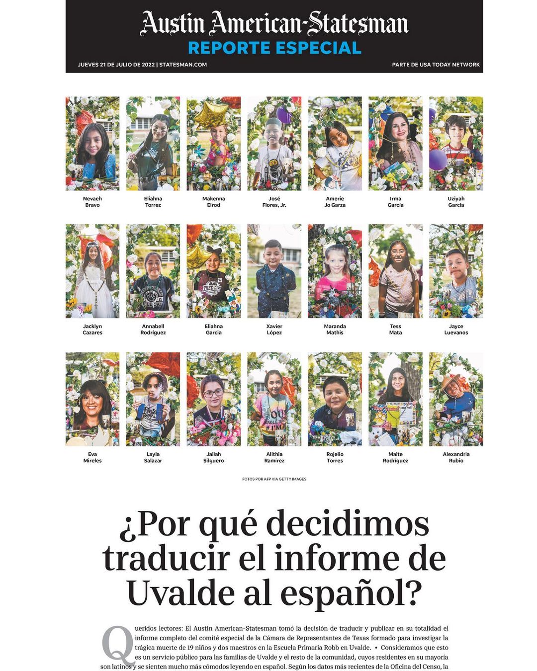 Journalists at the Statesman and USA TODAY translated and edited the entire 77-page report into Spanish. It was published as a special edition and 10,000 papers were delivered directly to Uvalde residents on Thursday.