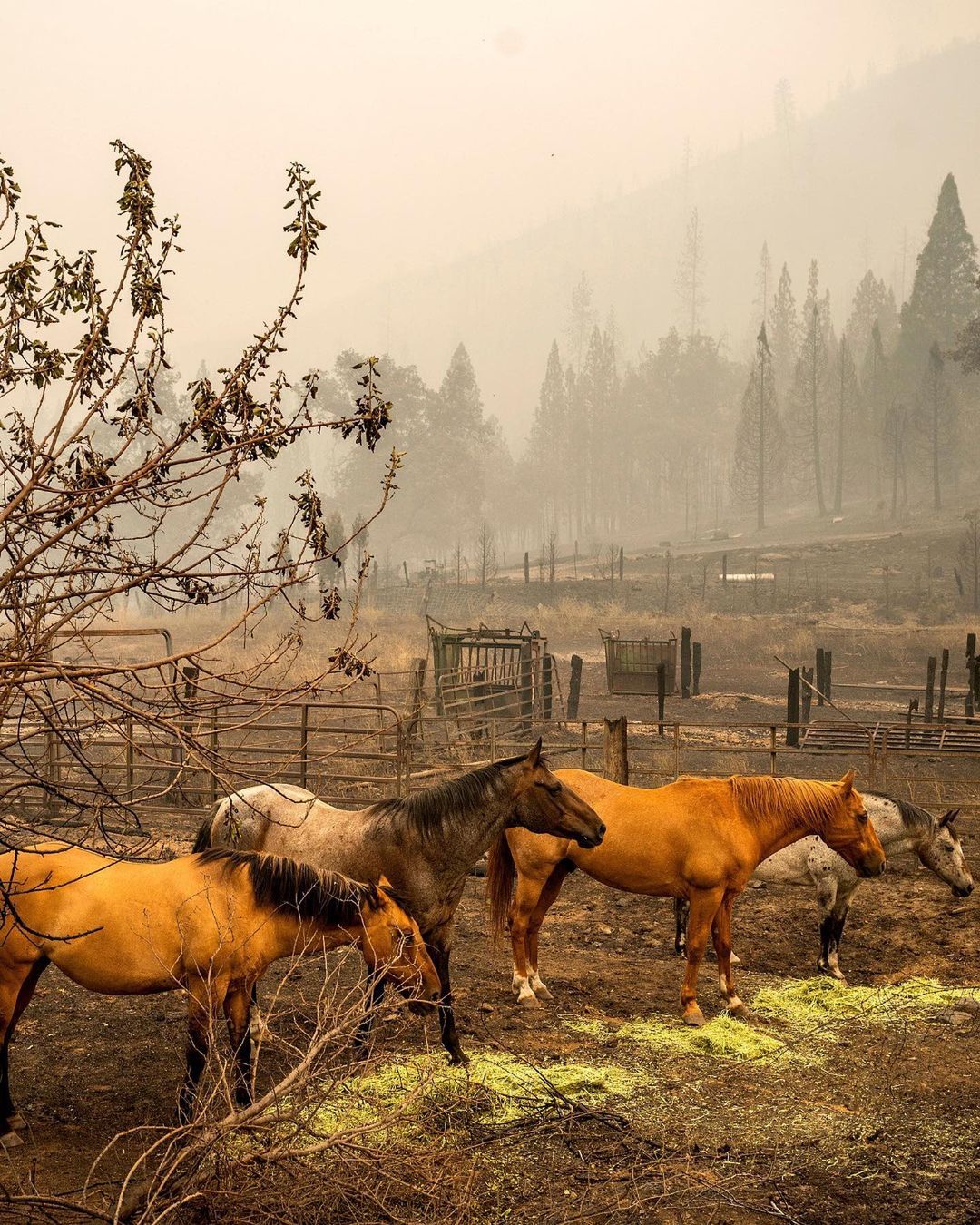 Two people in the McKinney Fire’s path were found dead as California's largest wildfire of 2022 scorched more than 50,000 acres in Klamath National Forest over the weekend, a sheriff's office said Monday. Fire personnel found the two bodies inside a burned vehicle parked in a residential driveway west of the Klamath River community Sunday morning. The uncontrolled fire grew to 86 square miles Sunday night. Over 2,000 people were forced from their homes as the growing wildfire raged west of Yreka City, California, located about 22 miles south of the California-Oregon border. Among the smoke and flames, firefighters faced threats as the fire intensified. Animals took shelter. The ruins of places like the Oak Mobile Park are what remain. Visit the link in our bio for more information and updates. 📷: @apnews, @gettyimages