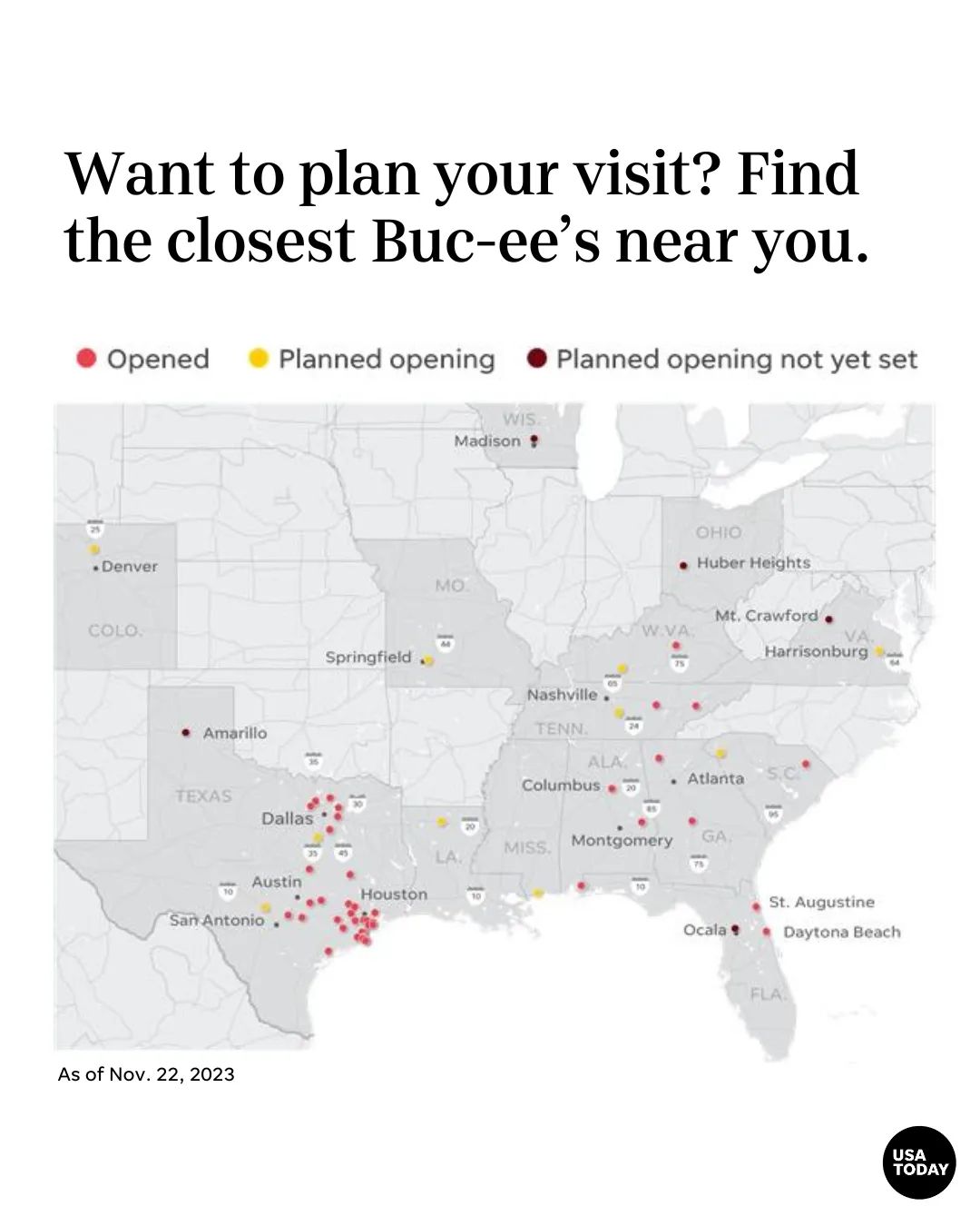 Buc-ee’s gas station/travel centers – many as big as a football field and all with bathrooms maybe cleaner than yours at home – are popping up across America in an ambitious expansion that started in Texas, surged across the southeast, and is now turning northward.