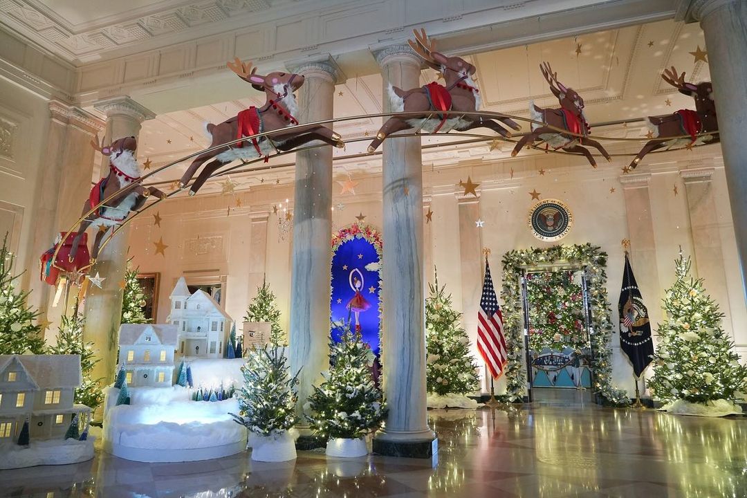 First lady Jill Biden unveiled the White House holiday decorations on Monday featuring displays that evoke the “magic, wonder, and joy of the holidays.” Approximately 14,975 feet of ribbon, more than 33,000 ornaments, over 22,100 bells and 142,000 holiday lights were used this year to decorate the White House. A crew of more than 300 volunteers spent a week decorating the inside and outside of the White House.