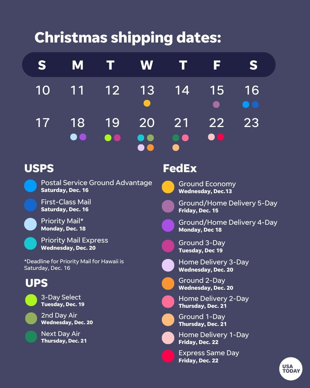 If you want your holiday gifts to arrive on time this year, make sure to get them out before these shipping deadlines.
