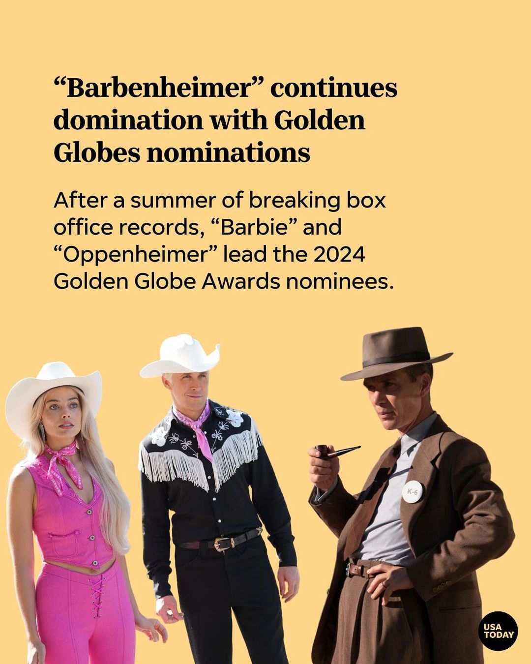“Barbenheimer” isn’t over yet: “Barbie” and “Oppenheimer” lead the pack for the 2024 Golden Globe nominations, earning nine and eight noms, respectively. #Barbie is up for best comedy/musical, while #Oppenheimer scored a best drama nod.