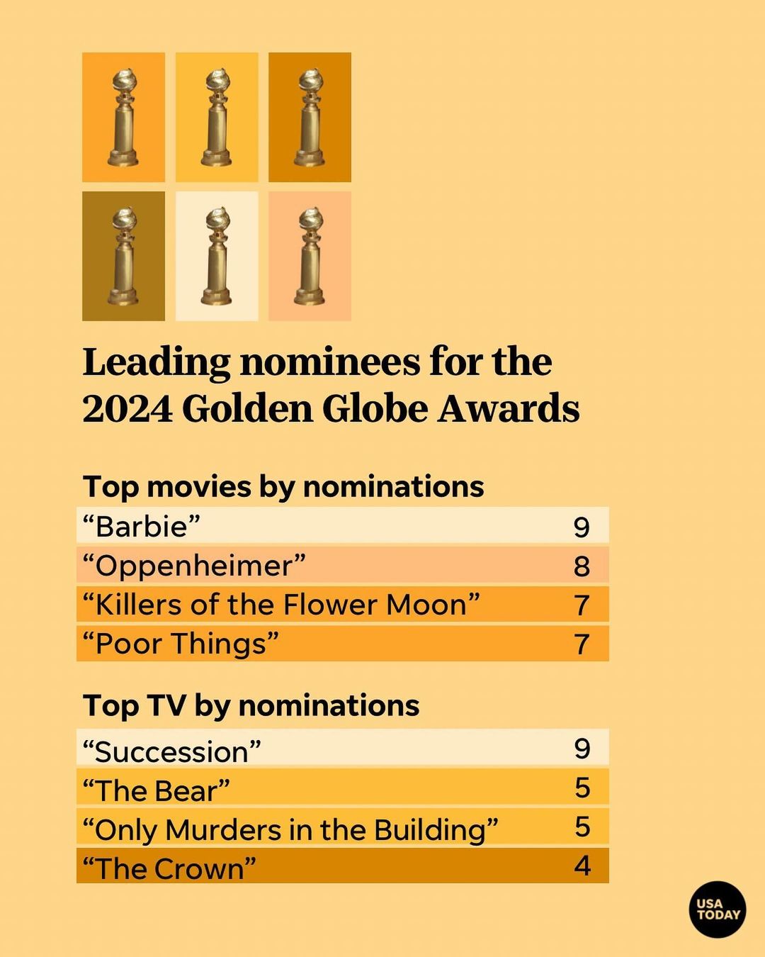 “Barbenheimer” isn’t over yet: “Barbie” and “Oppenheimer” lead the pack for the 2024 Golden Globe nominations, earning nine and eight noms, respectively. #Barbie is up for best comedy/musical, while #Oppenheimer scored a best drama nod.