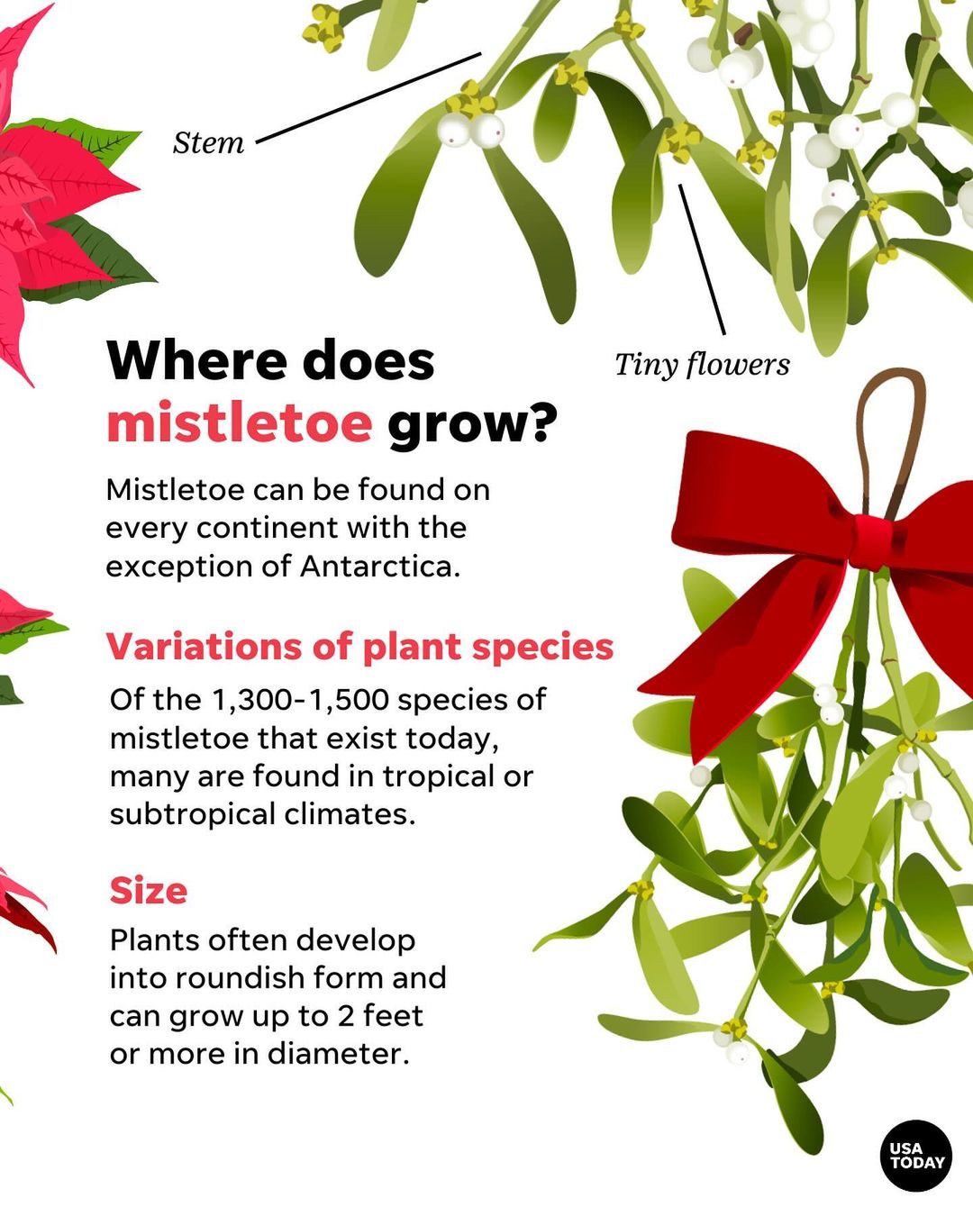 Poinsettia and mistletoe – are two very different plants that have gained popularity as decorations for the holidays.